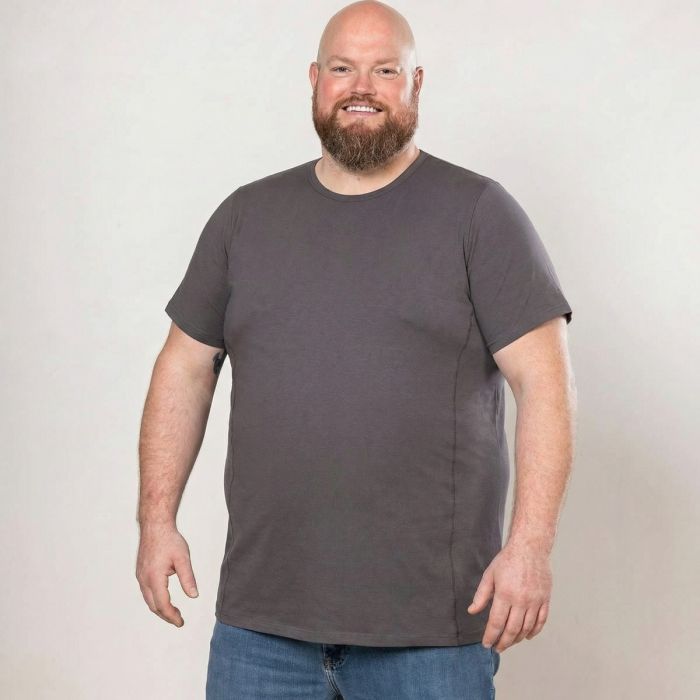 Het Alca Easy‑Going O‑Neck T‑shirt biedt een revolutionaire pasvorm voor mannen met een buikmaat van 2XL tot 8XL. Dankzij de elastische katoen-stretch mix sluit het shirt perfect aan bij schouders, borst én buik, zonder wijd of slordig te zitten.